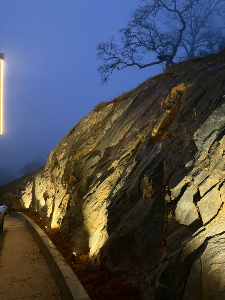 Outdoor Lighting Installation in Granite Bay. We wanted to accent the rocks’ rough shapes in this landscape and provide soft ambient light throughout the entire backyard.